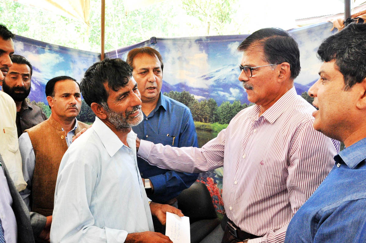BARAMULLA, July 12: Advisor to Governor K Vijay Kumar accompanied by Divisional Commissioner Kashmir, Baseer Ahmad Khan and Secretary Youth Services and Sports, Sarmad Hafiz today visited the Tangpora Pattan to console the family of young cricketer Jahangir Ahmad War who died yesterday during a cricket match organised in Anantnag district.
