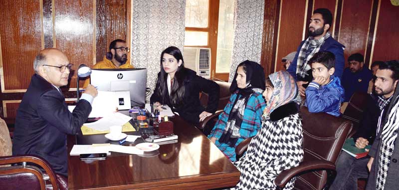SRINAGAR, Dec 3: Advisor to Lt Governor K K Sharma today convened a public grievances camp and gave on the spot directions to the concerned officials for speedy redressal of the issues being faced by the public.