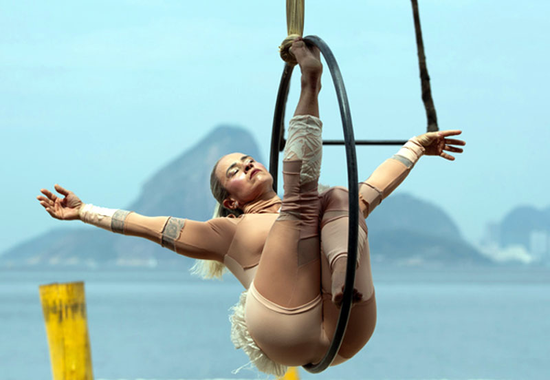 NITEROI (Brazil), Oct 19: Performers twisted and twirled above the sand on a beach across the bay from Rio de Janeiro in an aerial circus show that sought to draw attention to the widespread problem of violence against women in Brazil.