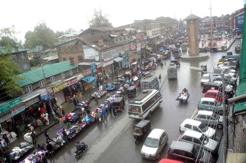 Aerial view of Sunday market at Lal Chowk in Srinagar on Sunday as normalcy returns after yesterdays strike call given by break away Hurriyat conference Chairman Syed Ali Shah Geelani against the alleged supply of spurious drugs to Kashmir hospitals. (UNI)