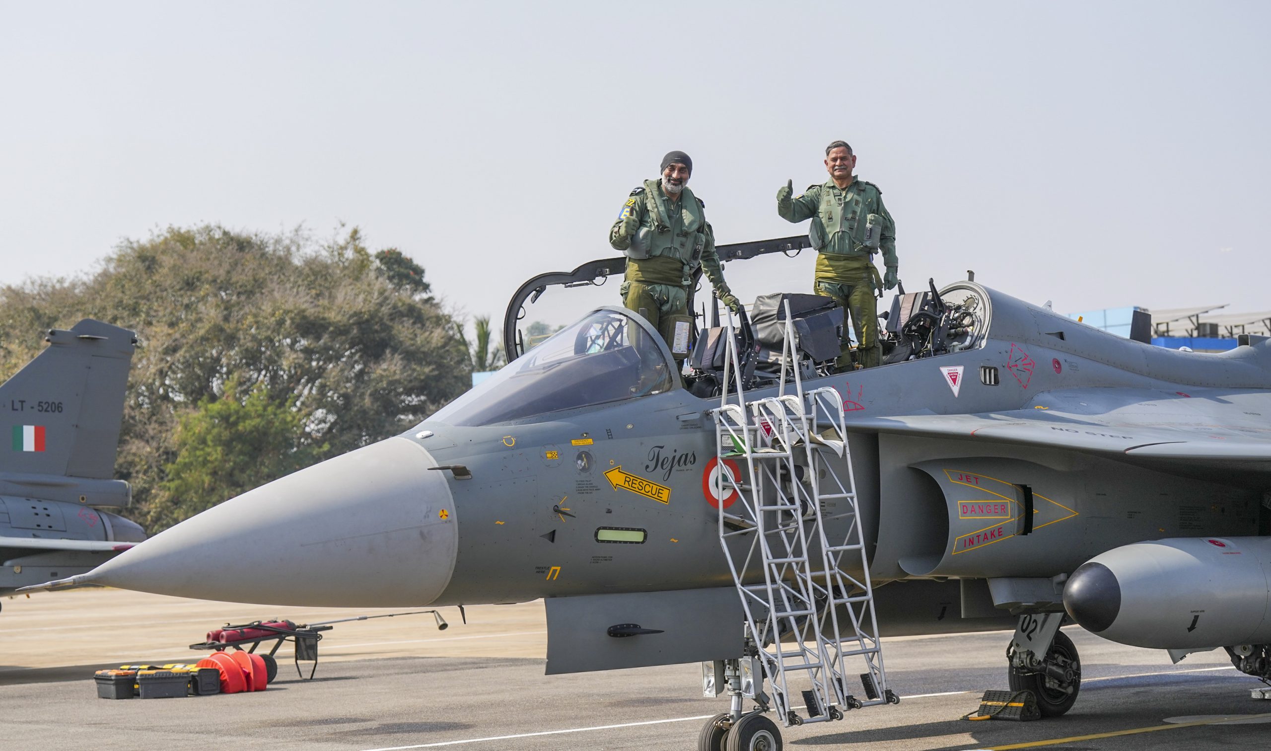 Bengaluru, Feb 9: Air Chief Marshal A P Singh and Chief of the Army Staff General Upendra Dwivedi on Sunday set the tone for the grand Aero India-2025 by flying in the Light Combat Aircraft (LCA) Tejas here at Yelahanka-based Air Force Station.