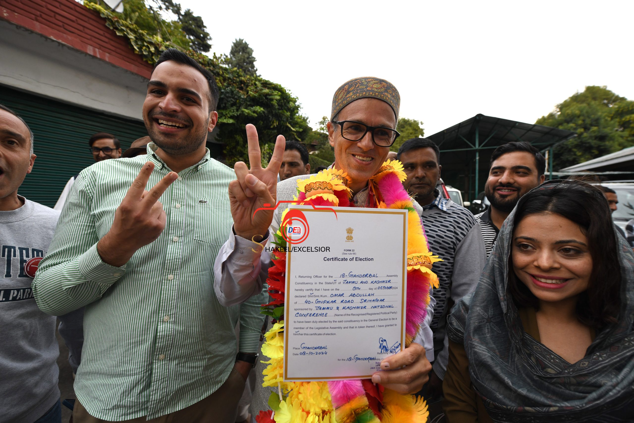 SRINAGAR, Oct 8: National Conference vice president Omar Abdullah on Tuesday won the party’s bastion of Ganderbal in the Jammu and Kashmir assembly election by defeating PDP’s Bashir Ahmad Mir by over 10,000 votes.