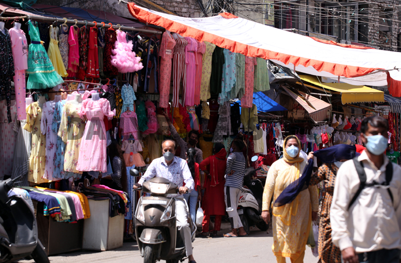 After Sunday’s Corona curfew, a market reopens in Jammu City on Monday.