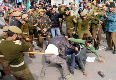 Agitating teachers being brutally lathicharged by cops near Dogra Chowk in Jammu on Wednesday. By Daily Excelsior - December 27, 2012 Share FacebookTwitterWhatsAppPinterestLinkedinCopy URLTelegramEmailTumblrReddItPrintKoo Agitating teachers being brutally lathicharged by cops near Dogra Chowk in Jammu on Wednesday. Follow our WhatsApp channel