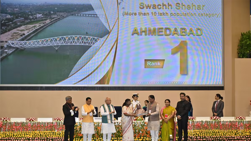 NEW DELHI, Jul 17 : Ahmedabad was named the cleanest big city on Thursday, followed by Bhopal and Lucknow in the government’s annual cleanliness survey, even as Indore, Surat, Navi Mumbai and Vijayawada among 23 cities were elevated to a newly formed ‘Super Swachh League Cities’ category for demonstrating exceptional performance in sanitation.