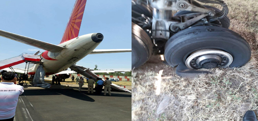 AI plane stranded at runway (left) and burst tyres after landing (right). —Excelsior/Rakesh By Daily Excelsior - June 10, 2017 Share FacebookTwitterWhatsAppPinterestLinkedinCopy URLTelegramEmailTumblrReddItPrintKoo AI plane stranded at runway (left) and burst tyres after landing (right). —Excelsior/Rakesh AI plane stranded at runway (left) and burst tyres after landing (right). —Excelsior/Rakesh Follow our WhatsApp channel