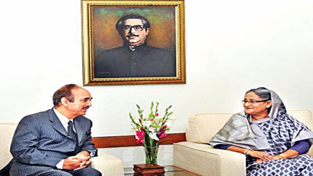 AICC General Secretary and Leader of Opposition in Rajya Sabha Ghulam Nabi Azad interacting with Sheikh Hasina at Dhaka on Saturday.