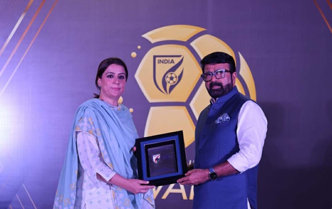 Secretary J&K Sports Council, Nuzhat Gul, received the award on behalf of J&K government during the glittering AIFF Awards Night, attended by numerous sporting icons and dignitaries. The gala event was aimed to celebrate remarkable achievements of Indian footballers over the past year.