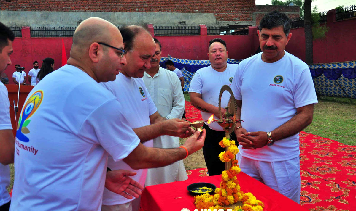 JAMMU, June 16: All India Institute of Medical Science (AIIMS) Jammu celebrated 8th International Day of Yoga ‘Yoga for Humanity’ at its makeshift campus located at NITS, Polytechnic Miran Sahib India Nagar, here today.