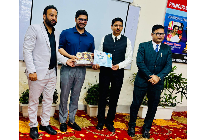 Jammu, Aug 12: All India Principals Association in collaboration with Sri Sukhmani Group of Institutions felicitated Ritesh Kapoor, Director Principal A.S.N.Hr.Sec. School, Channi Himmat, Jammu. Dr Navdeep Bhardwaj, President AIPA along with National team members felicitated Kapoor In recognition of his exceptional dedication, innovative approaches, and significant contributions to education.