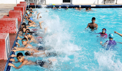 JAMMU, June 6: To bring a sigh of relief to the school children from the rising temperature and scorching heat in the region, the Air Force Station, Jammu is conducting a swimming coaching camp, here.