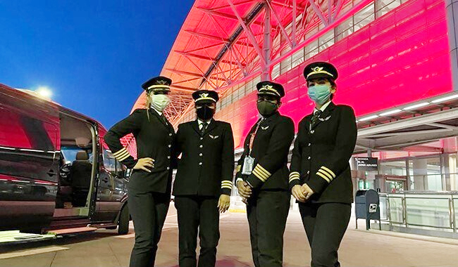 Members of the crew are: Captain Zoya Aggarwal, Captain Papagari Thanmai, Captain Akansha Sonaware and Captain Shivani Manhas.