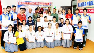 Brig Anil Jain, Commander, 401 Ind Arty Brigade, Basholi Cantonment was the chief guest on the valedictory function, organized at Kartar Public School, Barnoti.  Er. Nirmaljit Singh Amn, Chairman, Kartar Education Trust and Harpreet Kaur, Secretary-cum-Principal of KPS accorded warm reception to the chief guest. Kuldeep Singh Jamwal, President, J&K Rifle Association was the guest of honour.  Others who shared the stage were Sohan Lal Sharma, Vice President, JKRA, Rakesh Sambyal, DySP (Indoor) PTTI, Vijaypur, Inspector Sharat Chander, Vice President, JKRA, Rajesh Virdhy, Shooting Coach of JKRA, Rajeev Sharma (APS), General Secretary and Tarun Sharma.