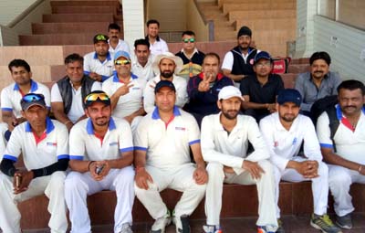 Teams of Aircel and Media posing for a group photograph at MA Stadium in Jammu.