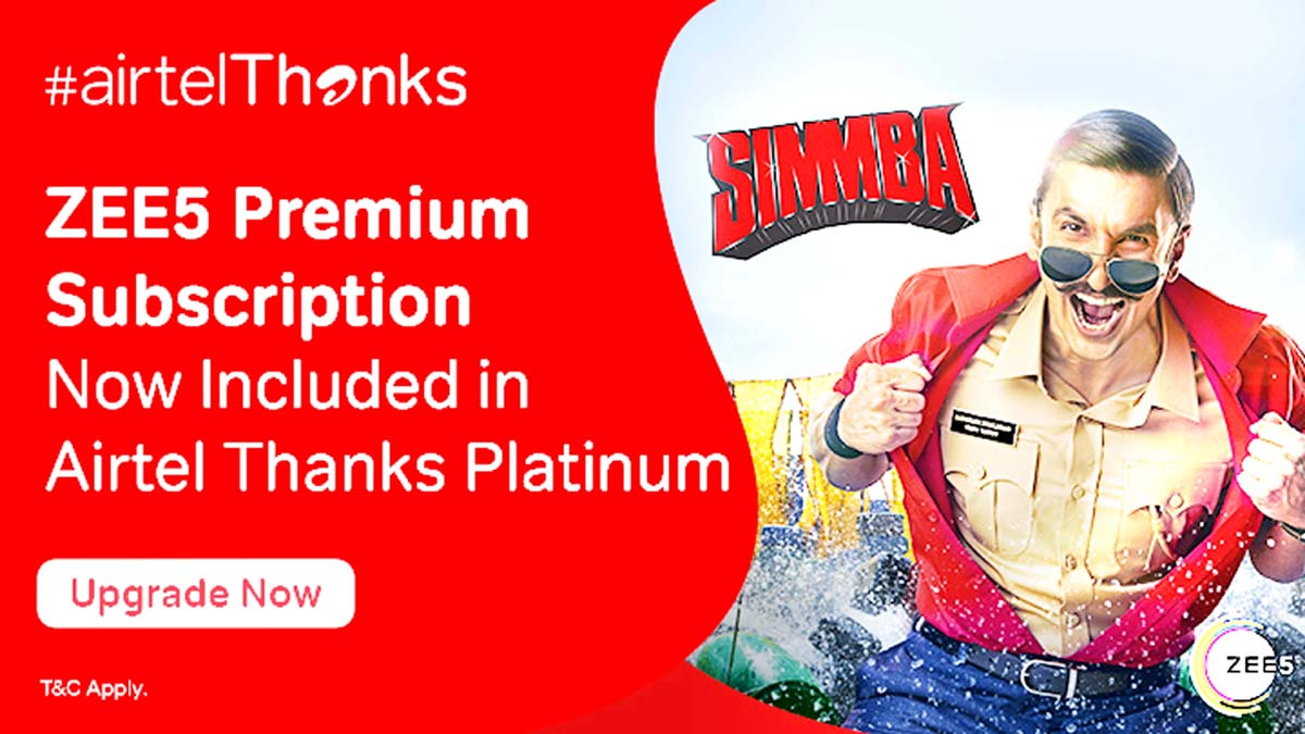 Airtel Platinum customers simply need to claim free ZEE5 Subscription offer from Airtel Thanks section of My Airtel app thereby download the ZEE5 app to start accessing this premium content.