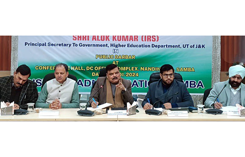 SAMBA, Jan 23: Principal Secretary Higher Education, Alok Kumar, today chaired a public darbar at Deputy Commissioner’s office here to take stock of public grievances and demands besides assessing development works being executed in the district.