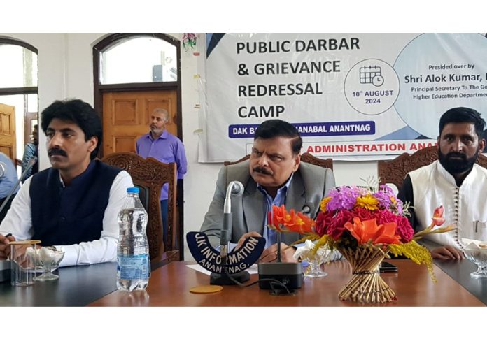 ANANTNAG, Aug 10: Principal Secretary Higher Education, Alok  Kumar, presided over a public darbar at Dak Bunglow Khanabal to provide a platform to the local residents to raise their issues and concerns for redressal.