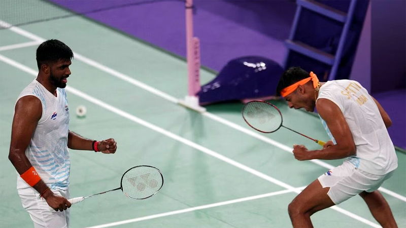 PARIS, July 30: Medal contenders Satwiksairaj Rankireddy and Chirag Shetty notched up a dominating straight-game win against Indonesian duo of Muhammad Rian Ardianto and Fajar Alfian to top Group C in men’s doubles badminton competition at the Paris Games here on Tuesday.