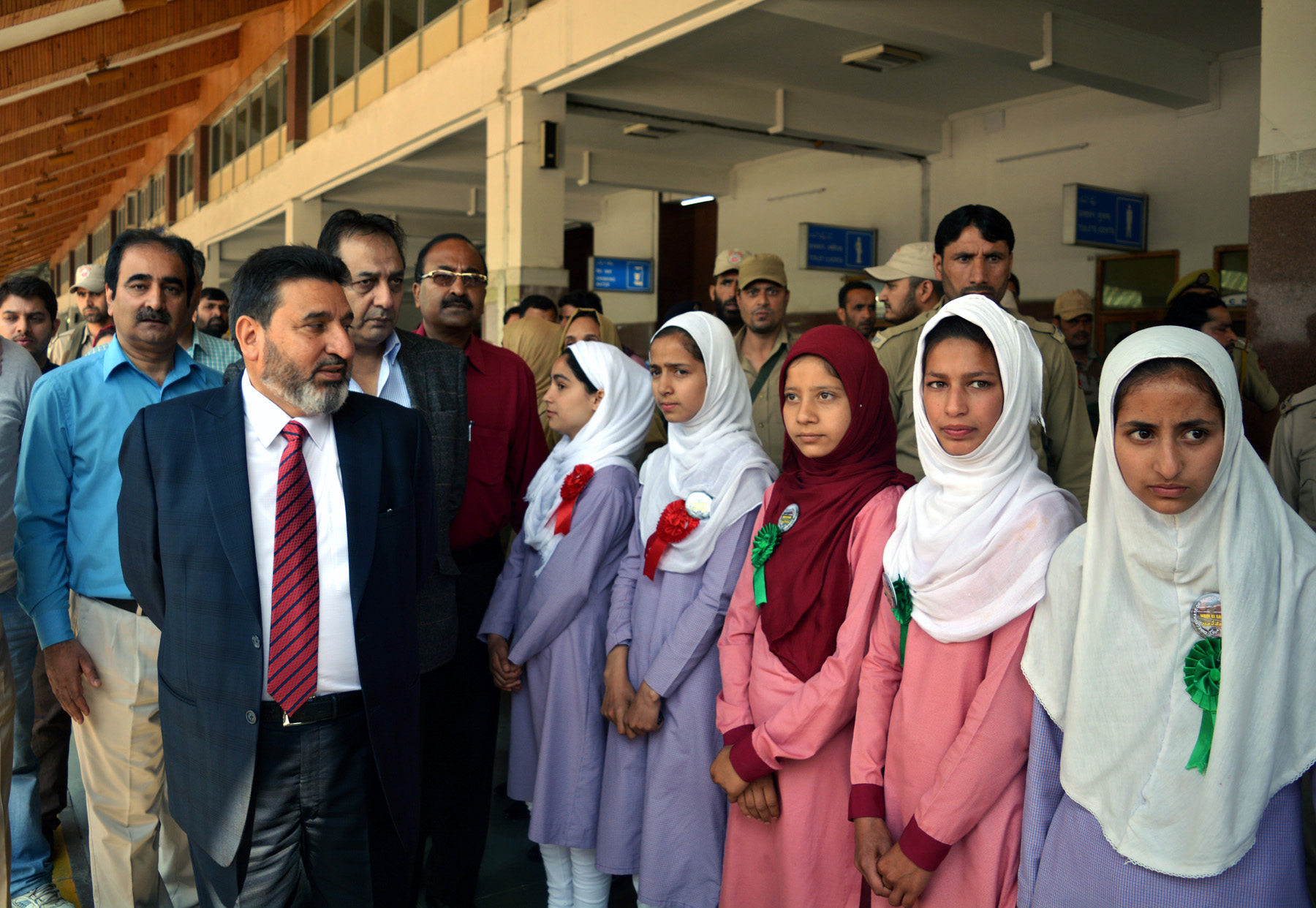 Divisional Commissioner Kashmir, Baseer Ahmed Khan, also met the students at the Nowgam station.