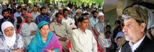 Minister for Forests, Mian Altaf Ahmad addressing public gathering at Kangan on Friday.