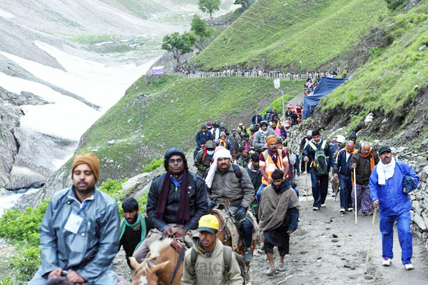 The pilgrims are likely to reach the cave shrine this afternoon. The pilgrims, who had paid obeisance and were stopped at the cave shrine and other places yesterday, have also started their return journey towards Baltal base camp.