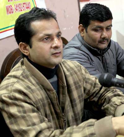Excelsior Correspondent JAMMU, Dec 10: Jammu and Kashmir Agricultural Technocrats Association (JKATA) today demanded amendment in the Cabinet order and regularization of technocrats on batch-wise pattern vis-à-vis curtailment in the time-period for regularization. Addressing a press conference, Dr Surinder Radotra, president, JKATA, said that they are working for the benefit of Rehbar-e-Ziraats (ReZ) for the last over a decade. He said that without any intimation or elections in the union how it is possible that their banner has been used by anti union elements thus creating voids and confusion between serving Rehbar-e-Ziraats (ReZ) and Government. We want batch-wise regularization as our seniors are facing lot of hardships and have crossed or are at the verge of age bar relaxation, he informed. Dr Maneet Singh, senior vice president, JKATA disclosed that the self created associations in the name of JKATA are using it on social networking site “FACEBOOK” on the name JKATA-Jammu and JKATA ReZ, which is totally illegal and spreading wrong message to serving ReZs. Dr Singh said that allegations on Dr Surinder Radotra are baseless and if they have any solid proof, then should prove it within 2 days. Among others present were Dr Rajiv Chib, general secretary, Dr Abhimanyu Mahajan, district president, Dr Pawan Dev Singh, district senior vice president, Dr Sikinder Singh, district vice president, Bupinder Singh, Rajesh Kumar and Mohan Singh.