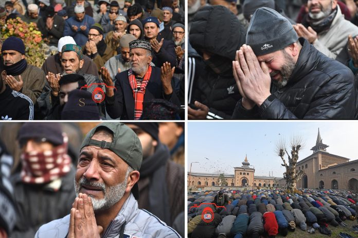 SRINAGAR, Jan 12: A large number of people held special prayers for rain and snowfall in Kashmir Valley to end the long dry spell at the historic Jamia Masjid in Srinagar on Friday.