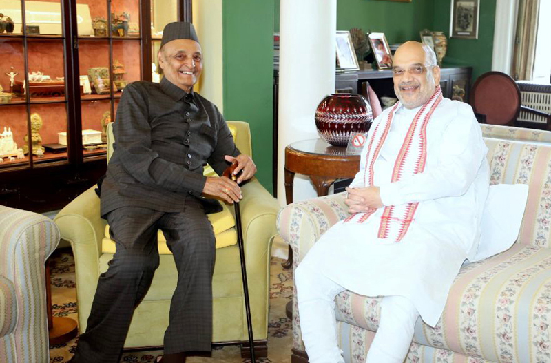The Home Minister, Amit Shah, who was on a two-day visit to UT of J&K visited former Sadr-e-Riyasat, Dr. Karan Singh on the last day of his visit, and discussed the present day political and development scenario in J&K and of the nation.