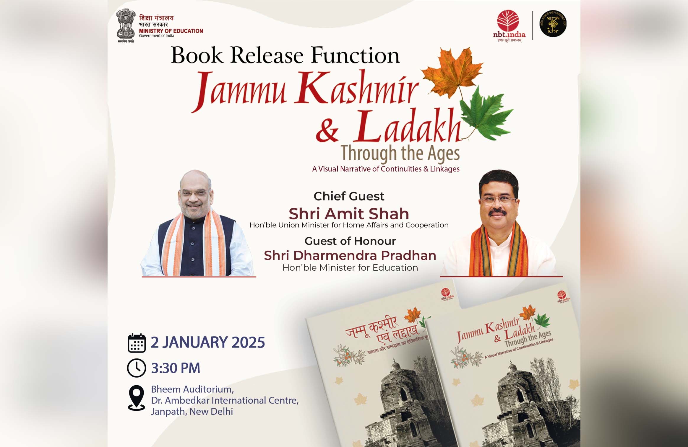 New Delhi, Jan 1: Union ministers Amit Shah and Dharmendra Pradhan will on Thursday launch a book titled “Jammu Kashmir and Ladakh: Through the Ages”, according to education ministry officials.