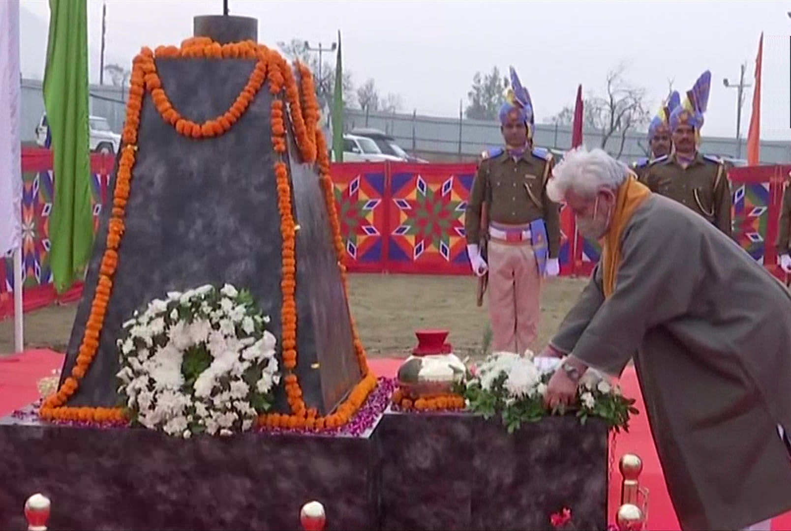 Lieutenant Governor Manoj Sinha also laid a wreath at the memorial, paying tribute to the personnel martyred in the 2019 Pulwama terror attack.