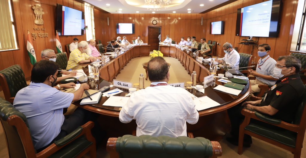 Lieutenant Governor of Jammu and Kashmir Manoj Sinha, NSA Ajit Doval, Army Chief General M M Naravane, Union Home Secretary Ajay Bhalla, Director of Intelligence Bureau Arvinda Kumar, R&AW chief Samant Goel, BSF DG Pankaj Singh and CRPF chief Kuldip Singh attended the meeting.