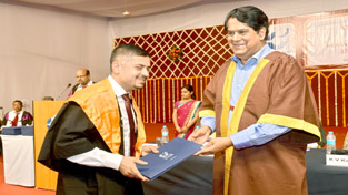 INDORE, Mar 31: Special Secretary, Animal/Sheep Husbandry Department, Amit Sharma, who had recently completed one year full-time Executive Post Graudate Programme in e-Governance (EPGP-EG) from Indian Institute of Management, Indore, was conferred diploma in e-Governance during the glittering 16th Annual Convocation ceremony held at IIM Indore Campus.