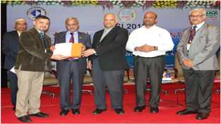 Amit Sharma receiving CSI Award from J Satyanaryana, Secretary DieTY, GoI and other dignitaries during CSI-Nihilent Awards Ceremony held at Vishakhapatnam.
