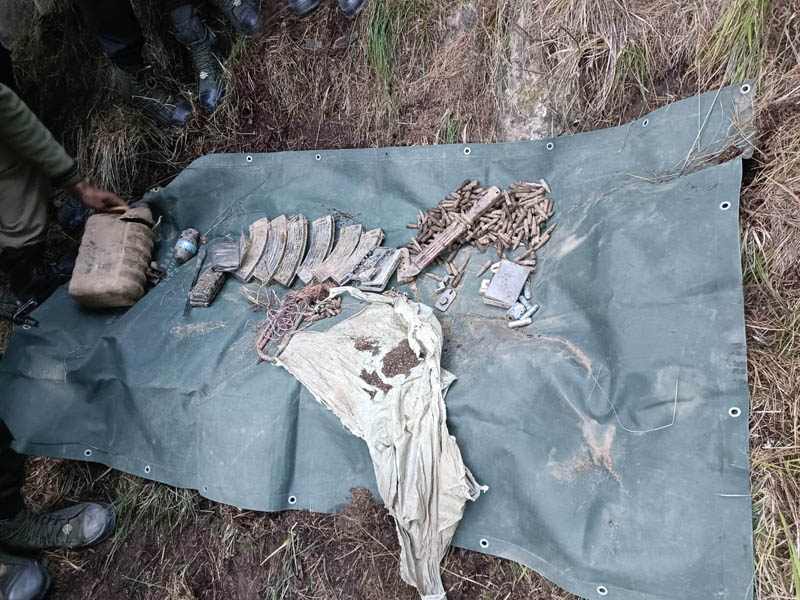Ammunition and explosives recovered from a militant hideout at Khari in Ramban district on Saturday. -Excelsior/Pervaiz By Daily Excelsior - October 23, 2022 Share FacebookTwitterWhatsAppPinterestLinkedinCopy URLTelegramEmailTumblrReddItPrintKoo Ammunition and explosives recovered from a militant hideout at Khari in Ramban district on Saturday. -Excelsior/Pervaiz Ammunition and explosives recovered from a militant hideout at Khari in Ramban district on Saturday. -Excelsior/Pervaiz Follow our WhatsApp channel