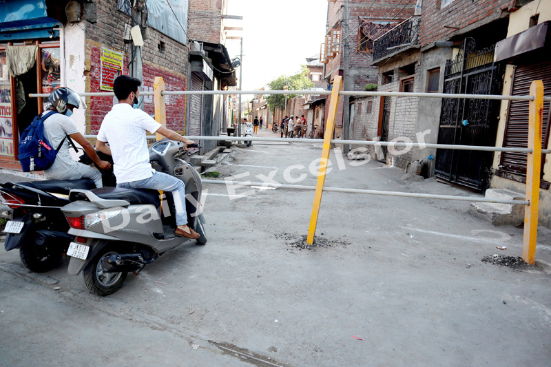An area in Srinagar sealed after being declared as Red Zone on Thursday. —Excelsior/Shakeel By Daily Excelsior - June 26, 2020 Share FacebookTwitterWhatsAppPinterestLinkedinCopy URLTelegramEmailTumblrReddItPrintKoo An area in Srinagar sealed after being declared as Red Zone on Thursday. —Excelsior/Shakeel An area in Srinagar sealed after being declared as Red Zone on Thursday. —Excelsior/Shakeel Follow our WhatsApp channel
