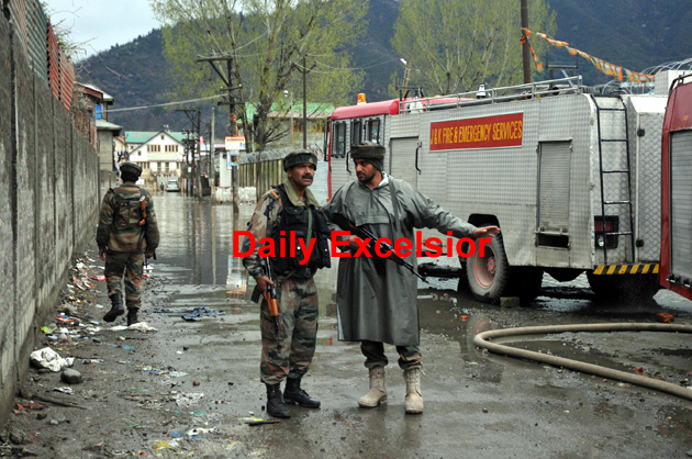 An army soldier stands guard near flood water at Sonwar Cantonment area of Badami Bagh army, in Srinagar on Friday.water levels rise on world famous Dal Lake Srinagar Excelsior/Mohd Amin War By Daily Excelsior - April 3, 2015 Share FacebookTwitterWhatsAppPinterestLinkedinCopy URLTelegramEmailTumblrReddItPrintKoo Follow our WhatsApp channel