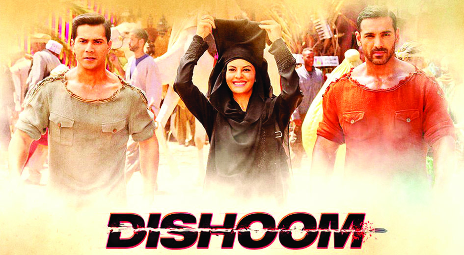 DISHOOM starts off with a well-planned kidnapping of Indian cricket team’s ace cricketer Viraj Sharma (Saqib Salim) by the dreaded Altaf (Rahul Dev), at the behest of Wagah (Akshaye Khanna) during a cricket series in the Middle East. The reason for Wagah to kidnap Viraj Sharma is to bail himself out of the Rs. 400 crore worth of debts that he has got himself into because of his match fixing deals going south. When the Indian government gets to know that Viraj Sharma has been kidnapped and that too, just 36 hours before the crucial and the much awaited India-Pakistan match, they decide to put their best police officer Kabir Shergill (John Abraham) on the job. Fearing national unrest and tension, they instruct Kabir Shergill not to utter a word to anyone about Viraj Sharma’s kidnapping. When the news reaches the embassy of the Middle East, they immediately become ready to offer all kind of possible help to Kabir Shergill. That’s when Kabir Shergill chooses the ‘never-solved-any-case’ police officer Junaid (Varun Dhawan), who is only way too happy to be chosen for the task of finding Viraj Sharma. What happens after that are a series of twists and turns, oodles of roller coaster ride and adventure tales of Kabir and Junaid and their parter in crime Ishika (Jacqueline Fernandez) who is a petty thief. Will Kabir Shergill be able to trace out Viraj Sharma before the India-Pakistan match, what role does Junaid play in tracing of Viraj Sharma and whose side is Ishika on and will she be of any help towards solving the mystery behind the kidnapping of India’s key player is what forms the rest of the film.