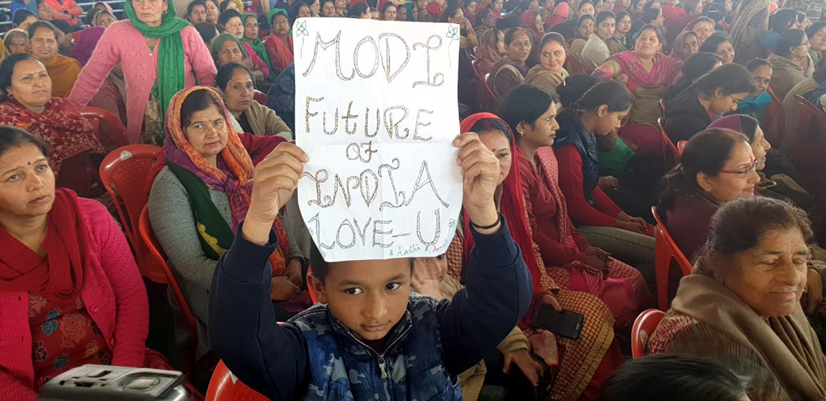 An enthusiastic kid displaying his reverence for Narendra Modi during mega public rally at Vijaypur on Sunday. By Daily Excelsior - February 4, 2019 Share FacebookTwitterWhatsAppPinterestLinkedinCopy URLTelegramEmailTumblrReddItPrintKoo An enthusiastic kid displaying his reverence for Narendra Modi during mega public rally at Vijaypur on Sunday. An enthusiastic kid displaying his reverence for Narendra Modi during mega public rally at Vijaypur on Sunday. Follow our WhatsApp channel
