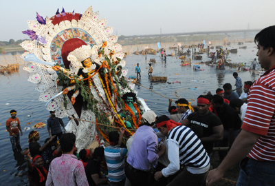 An idol of Durga being immersed in river Yamuna on the occasion of Vijay Dashami at Delhi on Wednesday. By Daily Excelsior - October 24, 2012 Share FacebookTwitterWhatsAppPinterestLinkedinCopy URLTelegramEmailTumblrReddItPrintKoo An idol of Durga being immersed in river Yamuna on the occasion of Vijay Dashami at Delhi on Wednesday. Follow our WhatsApp channel