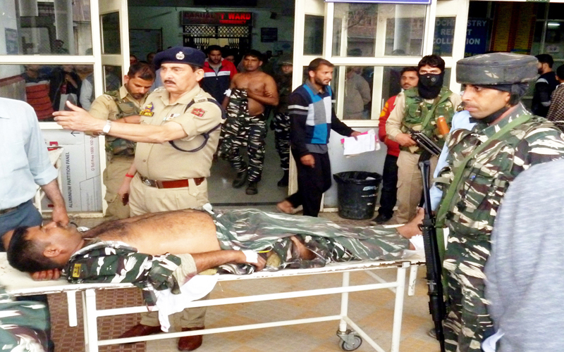An injured CRPF jawan being shifted to Anantnag hospital on Wednesday. —Excelsior/Sajjad Dar By Daily Excelsior - June 13, 2019 Share FacebookTwitterWhatsAppPinterestLinkedinCopy URLTelegramEmailTumblrReddItPrintKoo An injured CRPF jawan being shifted to Anantnag hospital on Wednesday. —Excelsior/Sajjad Dar An injured CRPF jawan being shifted to Anantnag hospital on Wednesday. —Excelsior/Sajjad Dar Follow our WhatsApp channel