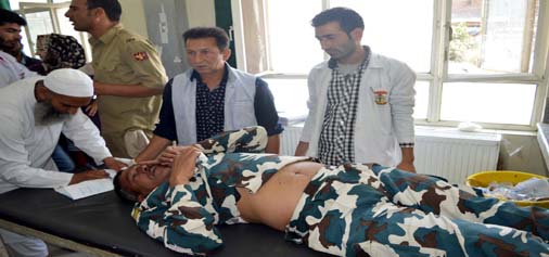 An injured CRPF jawan being treated in a hospital at Pulwama on Monday. -Excelsior/ Younis Khaliq By Daily Excelsior - June 7, 2016 Share FacebookTwitterWhatsAppPinterestLinkedinCopy URLTelegramEmailTumblrReddItPrintKoo An injured CRPF jawan being treated in a hospital at Pulwama on Monday. -Excelsior/ Younis Khaliq An injured CRPF jawan being treated in a hospital at Pulwama on Monday. -Excelsior/ Younis Khaliq Follow our WhatsApp channel