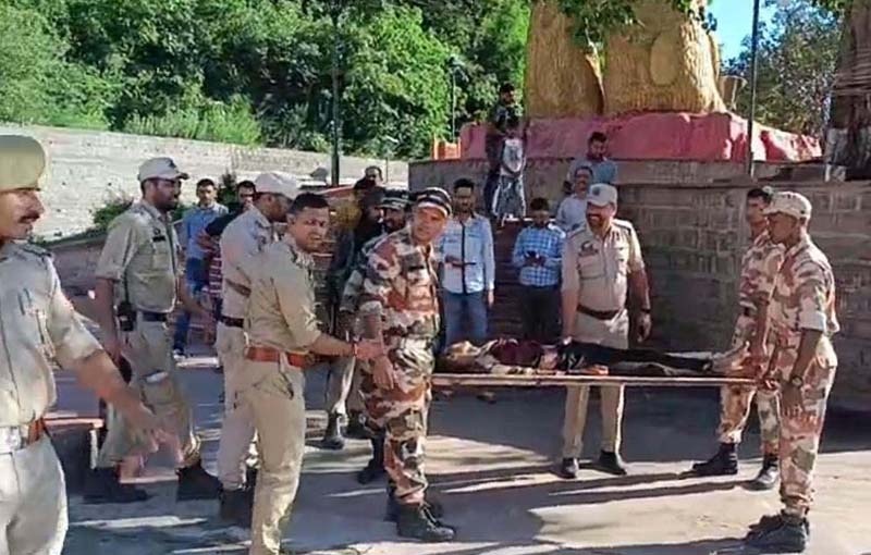 An injured ITBP jawan being shifted to hospital in Udhampur on Saturday. -Excelsior/K Kumar