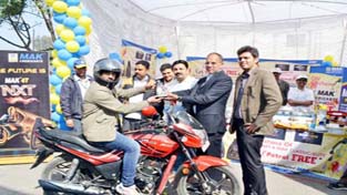 An official of BPCL presenting a bottle of petrol lubricant to a customer during the launch of BPCL’s ‘3-day wonder’ scheme at M/s Fairdeal Filling Station, Gangyal Jammu.