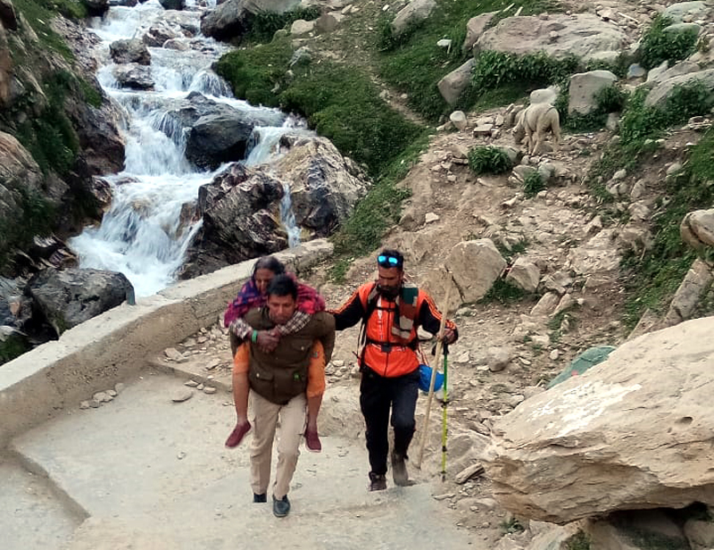 In another demonstration of their dedication, Anantnag Police carried yatris unable to walk on their shoulders, provided medical assistance by transporting them to nearby hospitals and continued to offer drinking water throughout the journey.