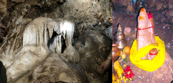The locals said that this cave was inaccessible due to its location but as they used to hear some kind of sounds from that area, nobody ever dared to go that side. A daring youth of the area namely Sunil Kumar, son of Paras Ram, armed with gun and assisted by 2-3 more youth, managed to reach up to the cave using ropes and his mountaineering skills. He saw a Shiva Lingam, stone idols of Shiva family, a statue of Saint and Hanuman. The cave appears to be almost equal to that of Shiv Khori. After this, the youth returned and told this matter to the whole village.