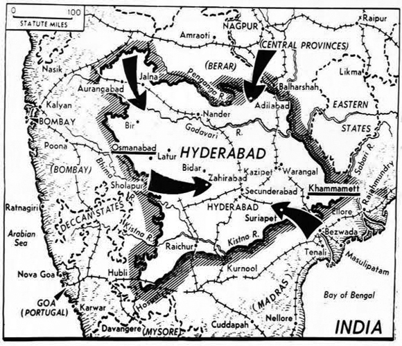 Nizam had started dovetailing its policies and politics with that of Pakistan and even sanctioned a loan of Rs. 200 million to Pakistan. They had started scouting for weapons, ammunition and armaments from Europe as it was flush with used weapons after the end of world war. Hyderabad also stopped supply of metals to India. In turn Govt of India initiated economic blockade of the state. Nizam also raised a paramilitary force of around 40,000 called the “askars”. The trains passing through Hyderabad to Indian enclaves were ambushed. Razakars continued to harass the population also on the Indian side of the dividing line between the two “countries”. Effort by Lord Mountbatten and Monckton (advisor to Nizam) to settle the issue before the departure of the Viceroy in Dec 1948 bore no fruit and the situation continued to turn grave.