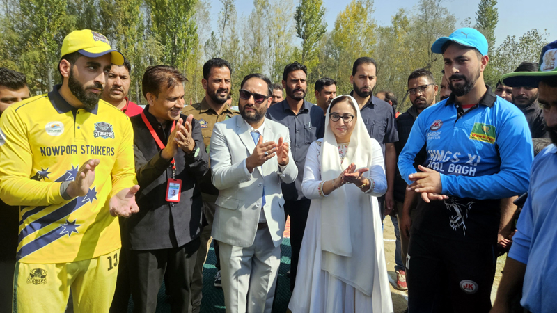 PULWAMA, Oct 20: The Dr. APJ Abdul Kalam Premier League Cricket Tournament commenced today at Dangerpora Padgampora, here organized by the Jammu & Kashmir Development Foundation. The inauguration ceremony was graced by Dr. Syed Darakhshan Andrabi, Chairperson of the J&K Waqf Board, along with notable figures such as Bilal Parray, Chairman of the Foundation; Superintendent of Police Awantipora Raashid Ahmad; Magistrate Awantipora Shakeel Ahmad; and Assistant Commandant CRPF Vinay Kumar.