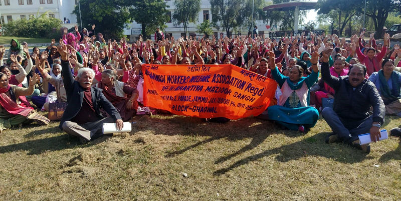 Ashok Choudhary Sangathan Mantri, Bhartiya Mazdoor Sangh alleged that Anganwadi workers/helpers have been working since long and J&K state is the only state who is paying state share just @ Rs 600 per month or workers and Rs 300 PM for helpers since 2010 and after including centre share they are being paid total honorarium @ Rs 5100 per month for Anganwadi worker and Rs 2550 for helpers. The neighbouring states are paying state shares i.e. Haryana state share Rs 8161, Delhi 6750, Punjab 3650 and Himachal Pradesh Rs 4500, whereas Jammu and Kashmir is paying only Rs 600 and Rs 300 PM for workers/helpers respectively.
