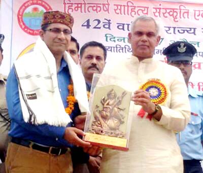UNA (HP), Apr 19: Bureau chief of PTI Jammu Anil Bhat was awarded Amar Shaheed Lala Jagat Narayan memorial award for excellence in Journalism by the Himachal Pradesh Governor, Acharya Devvrat, who presented National Integration awards to 7 distinguished personalities at 42 nd annual State level ceremony here.