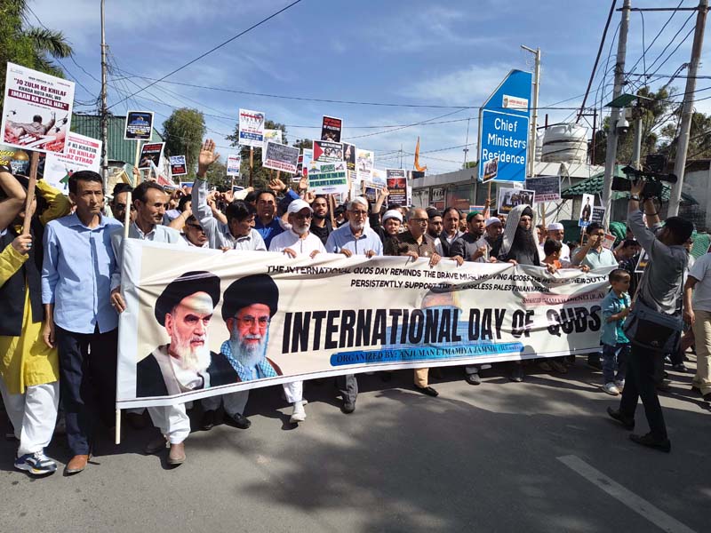 A peaceful and dignified procession was organized by Anjuman-e-Imamia Jammu to commemorate Quds Day, witnessing remarkable unity and participation from both the Shia and Sunni communities. The event reflected a strong message of brotherhood, solidarity, and collective concern for the oppressed people of Palestine.